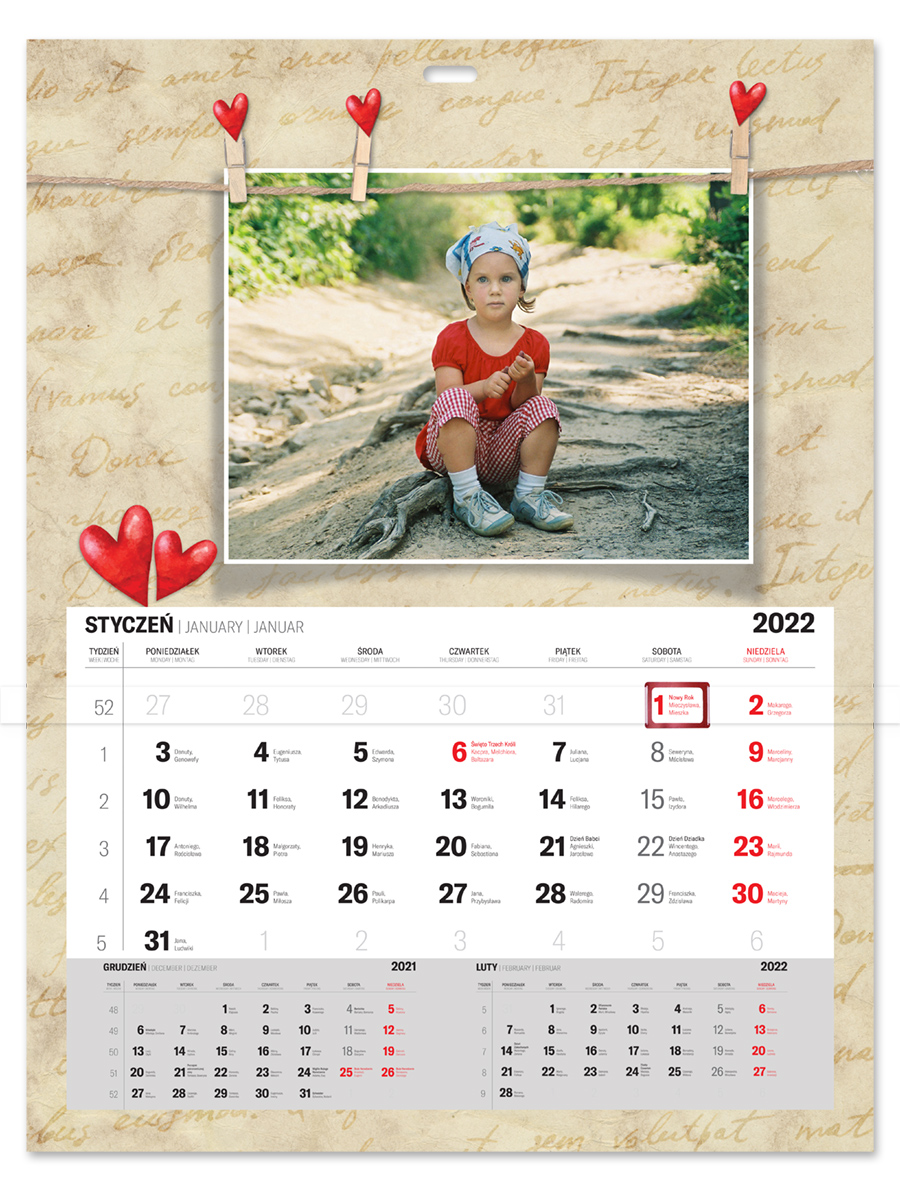 • kalendarz w formacie 32 x 42 cm z kalendarium zdzieranym i jednym zdjęciem