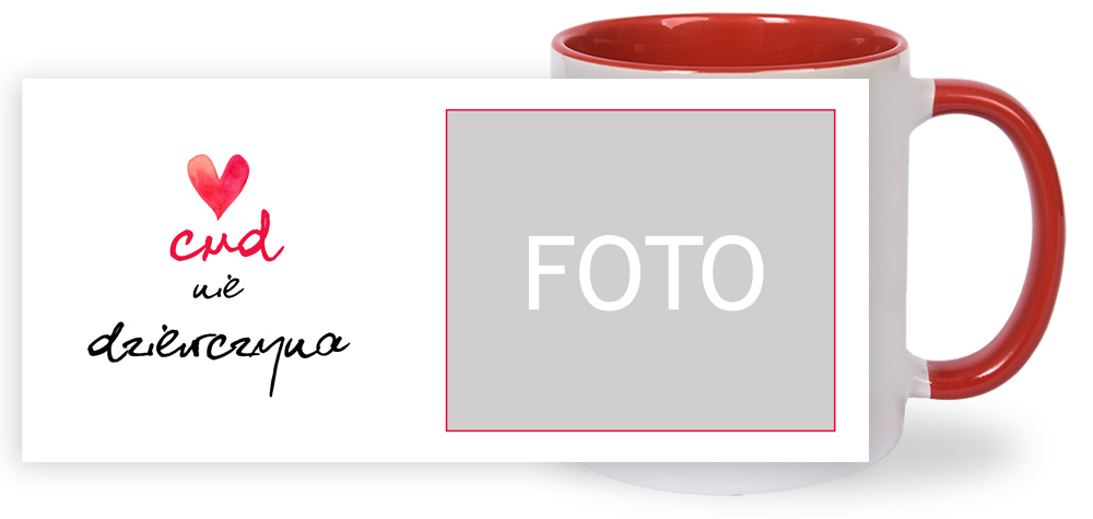 • kubek ceramiczny o pojemności 300 ml z czerwonym uchem i wnętrzem