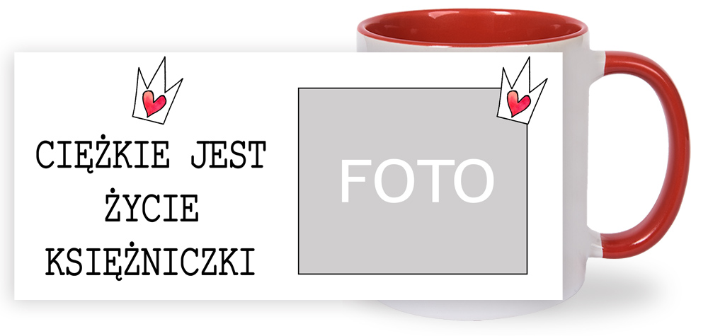 • kubek ceramiczny o pojemności 300 ml z czerwonym uchem i wnętrzem