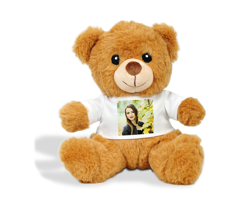 • miś - maskotka w koszulce ze zdjęciem, grafiką, napisem
